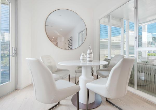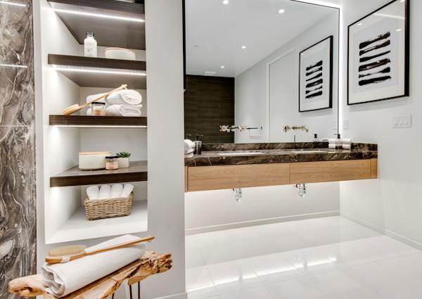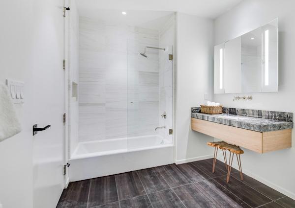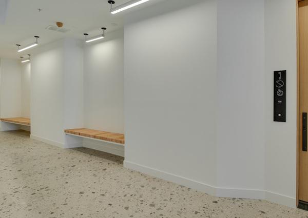 The building teamed up with Fitness Design Group in order to create an inspiring fitness amenity with top of the line equipment. The design provides a nice space for cardio, balanced with adequate space for functional exercises, strength training, and recovery practices. A soft, subtle color palette, and floor to ceiling sliding glass doors draw tenants in, encouraging frequent use of the gym. The fitness center includes: