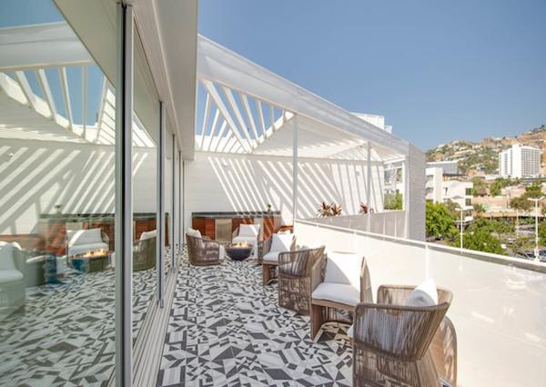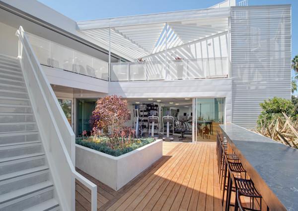 One of the main highlights of this uniquely shaped building is its facade cut-outs that open up a large outdoor space facing the North Side of Hollywood Hills. With 180 degree views and an open, two tiered layout, this area is sure to assist with any outdoor entertaining needs. The amenity deck features the following: