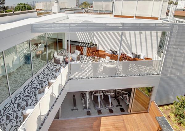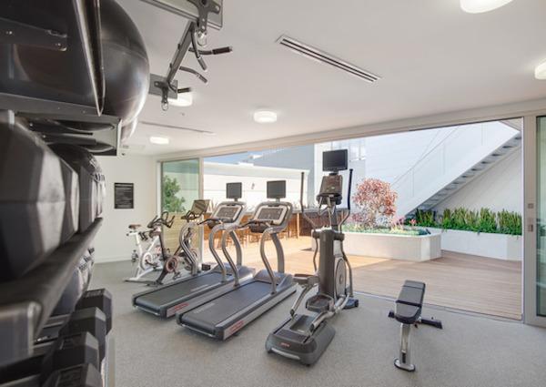 A secondary, interconnected common open space is located on the third and fourth floors. This active double height space is comprised of a gym, a communal roof deck, outdoor yoga space, seating areas, and plantings. Located on the north side of the building, this amenity brings additional light into the common corridors and creates open views for residents, while breaking down the volume of the long elevation, which will be visible from Santa Monica Blvd.
