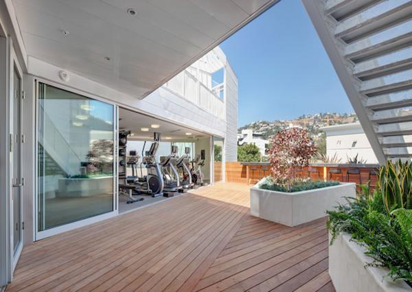 Fleetwood Slider Doors are installed all along the Fitness Center allowing for an indoor-outdoor exercise experience.