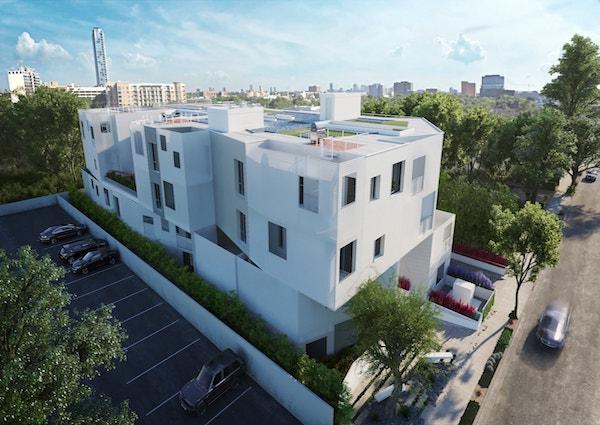 1030 Kings Road, built in 2018, is located on historic Kings Road near the busy thoroughfare of Santa Monica Blvd, this 4-story, 25-unit multifamily residential building in West Hollywood responds to the scale of the existing city fabric by generously carving away large portions of its massing in order to provide a scale appropriate to the lively, pedestrian character found in this neighborhood.