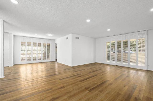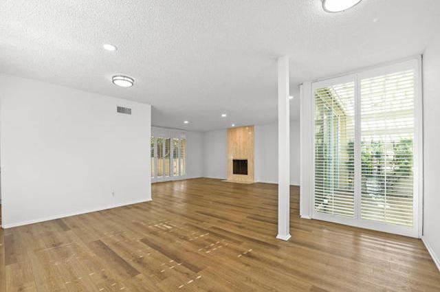 Beautifully landscaped and private walkways lead to sleek stone entries and extra tall double entry doors. They feature dramatic pitched and beamed ceilings in the living room, a fireplace, front and rear patios, center atriums, floor to ceiling glass doors and windows, kitchens with breakfast area and private two car garages.