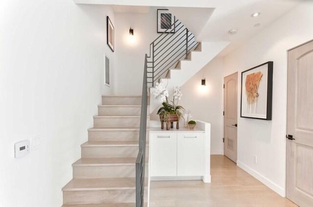 These thoughtfully designed residences feature spacious two-bedroom layouts, ranging from 1,450 to 1,950 square feet, seamlessly blending classic charm with modern European elegance. Each townhome boasts open, light-filled interiors with exquisite French oak wood flooring throughout. The inviting living rooms feature elegant fireplaces and open onto private outdoor patios, creating a seamless indoor-outdoor flow. The designer kitchens are a chef’s dream, outfitted with premium Viking stainless steel appliances, sleek stone countertops, and bespoke cabinetry.