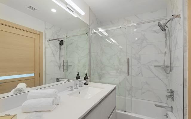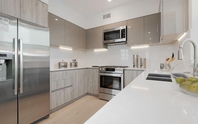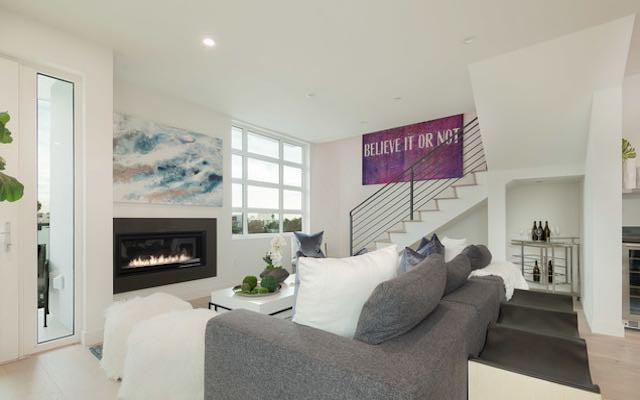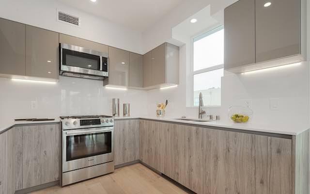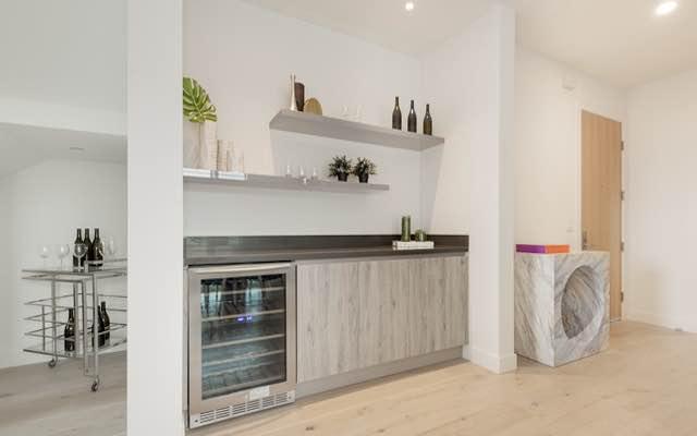 Each thoughtfully designed residence is situated on a corner and draws an abundance of natural light from multiple directions, giving an airy, open plan interior with an inviting feel that connects to spacious balconies.Finishes are carefully selected to create a seamless flow between kitchen, dining and living areas with white oak hardwood floors, custom Italian cabinetry, stainless steel German appliances, Caesarstone counters, custom interior doors and modern fireplaces. Porcelain tile bathrooms with floating vanities, bathtubs and custom built closets complete the Master suites. The Penthouse units feature direct access, grand private sundecks with outstanding City and Hollywood Hills views, for lounging, dining and entertaining.