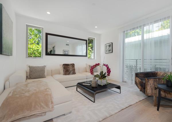 1421 North Stanley offers 4 units on 3 floors with three bedroom layouts ranging around 1,600 square feet. Each of the 3 bedroom and 2.50 bathroom units boast impeccable features and finishes, from Porcelanosa and Graff fixtures to Caesarstone counter tops and custom Miton Italian Kitchens. Each townhouse indulges the California indoor outdoor living with large partially grassed, private rooftops with unobstructed views of the Hollywood Hills. The townhouses come fully equipped with LG stainless steel kitchen appliance, full-size washer and dryer, and two covered parking spots.