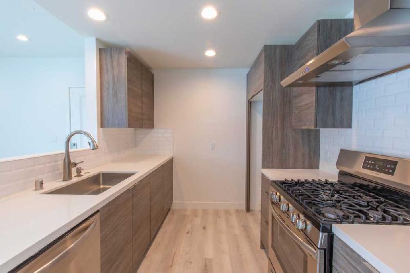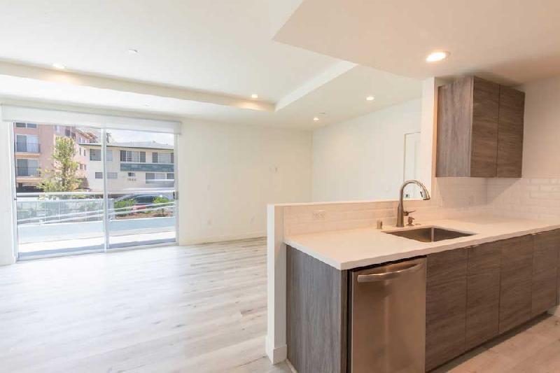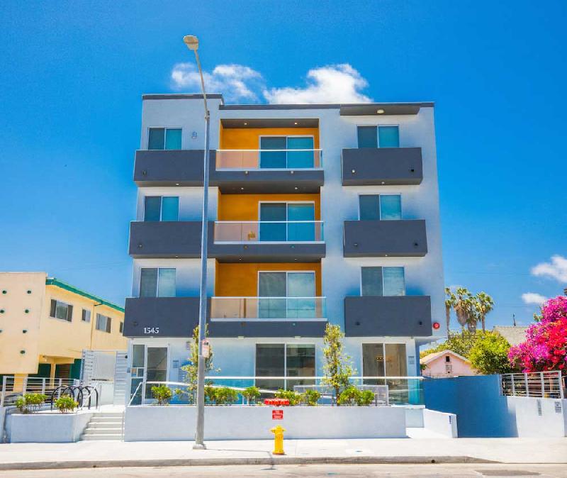 1545 South Fairfax offers 10 units on 4 floors with two and three bedroom layouts. The units offer sleek interiors, high ceilings and recessed lighting throughout. They feature modern kitchens with marbled quartz countertops, tile backsplash, stainless steel appliances and modern fixtures. There are big windows in all the bedrooms allowing for natural light and also add to the spacious feel of the rooms. There are washer and dryer in each unit, the higher floor units get amazing citywide views and all units feature balconies.