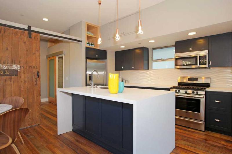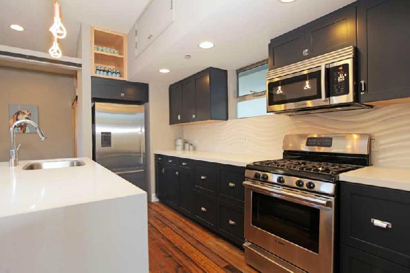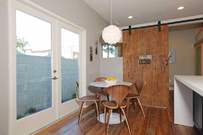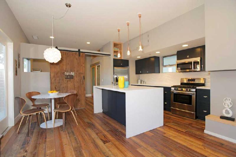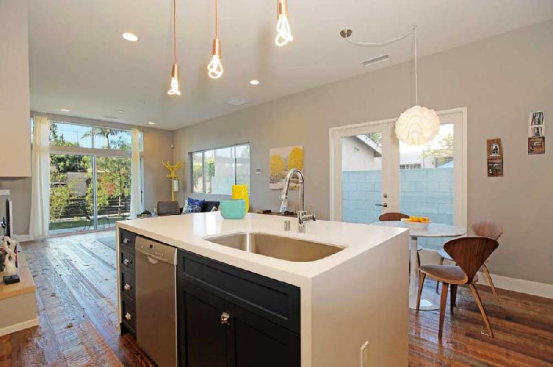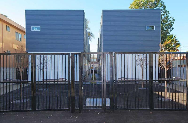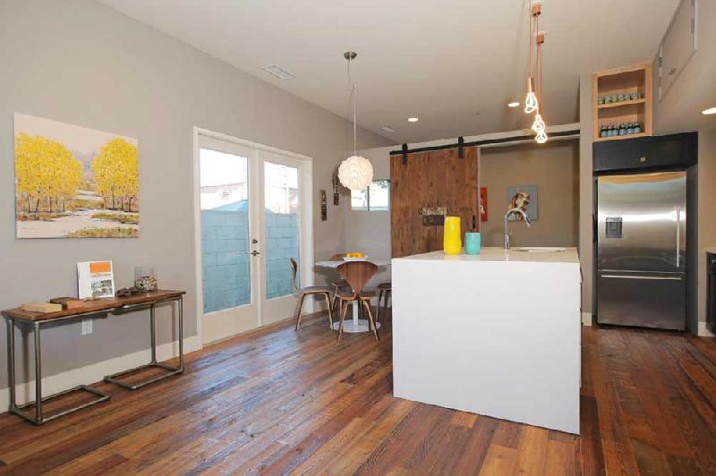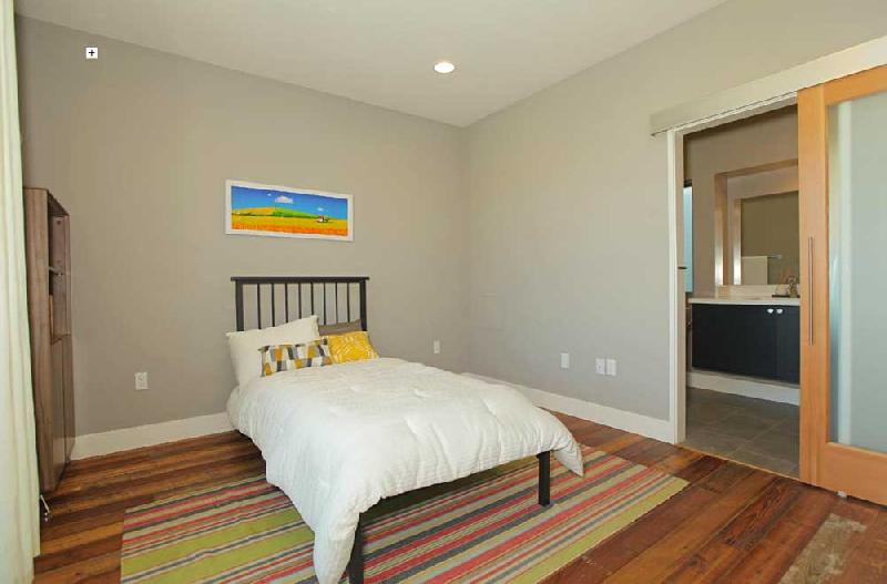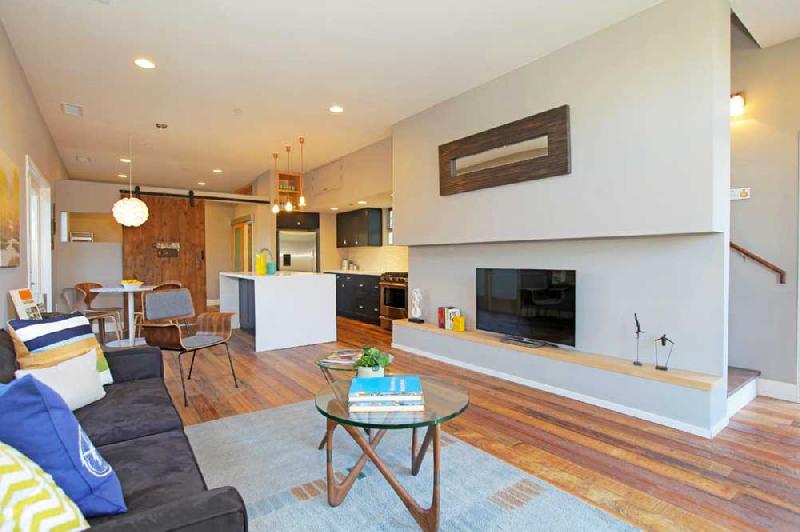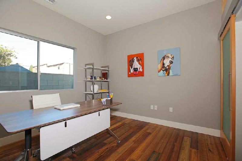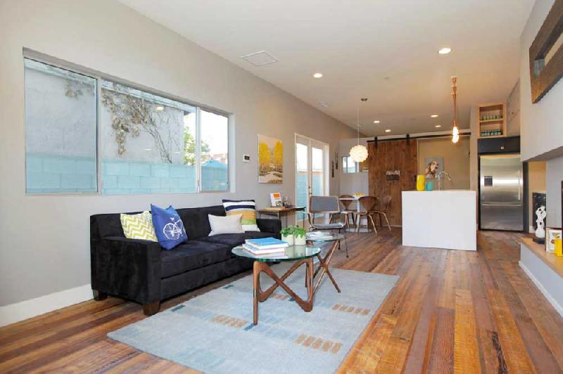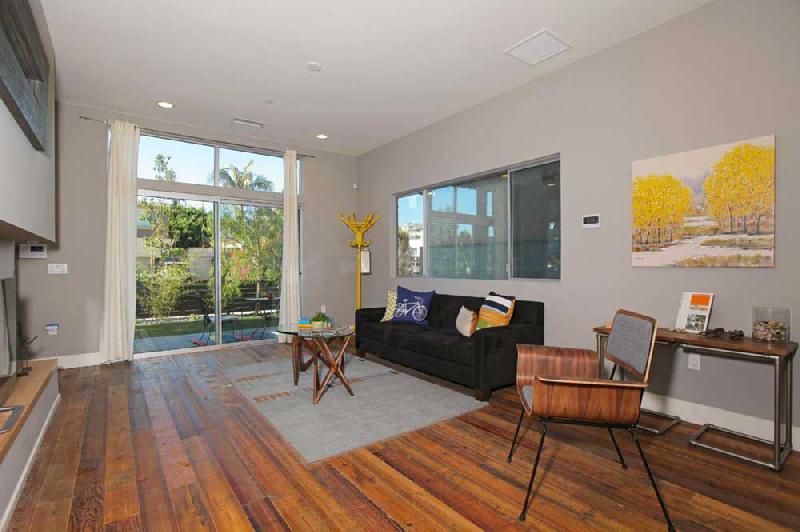 These stunning architectural homes offer well thought out floor plans with 10ft ceilings, hardwood floors reclaimed from an 1840 Tennessee tobacco barn, large private courtyards and gated 2-car tandem parking. The gourmet kitchens boast Caesarstone counters, large center islands, Porcelanosa tile backsplashes, custom cabinets and stainless steel Bosch appliances. The large master suites have 2 closets, including a large walk-in, and sumptuous bathrooms, double vanity sinks and large showers with pebble floors, floor-to-ceiling porcelain tile and skylights.
