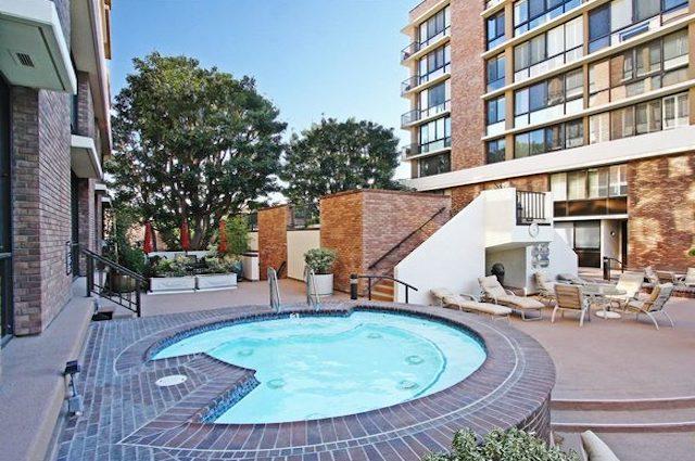 Amenities include a concierge, switchboard, valet parking, heated swimming pool, spa, sun deck, and gym.