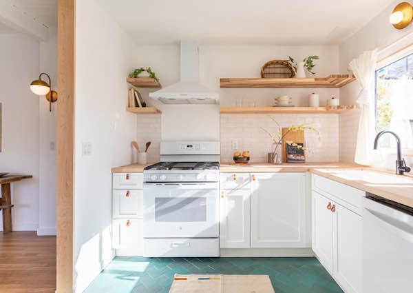 These bright units deliver on all fronts with Mid-Century vibes, hardwood floors and sunbathed rooms. Featuring moody emerald tile floors in the streamlined kitchens, with designer fixtures, open shelving and brand new appliances, even a dishwasher. The beadboard in the living room adds texture and the wood trim around the windows ground the design with earth tones, making these units feel more like a home. Bountiful storage with floor-to-ceiling double closets, built-in linen closets, and renovated baths with in-unit laundry.