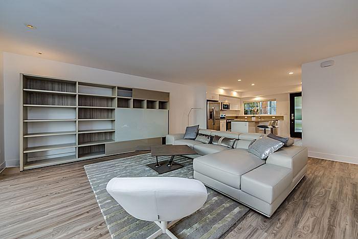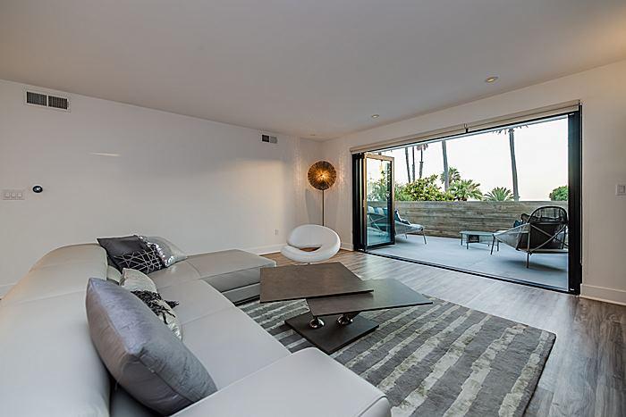 - Glass wall folds open to create indoor-outdoor flow to balcony or terrace