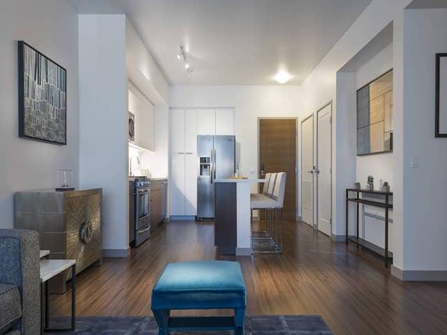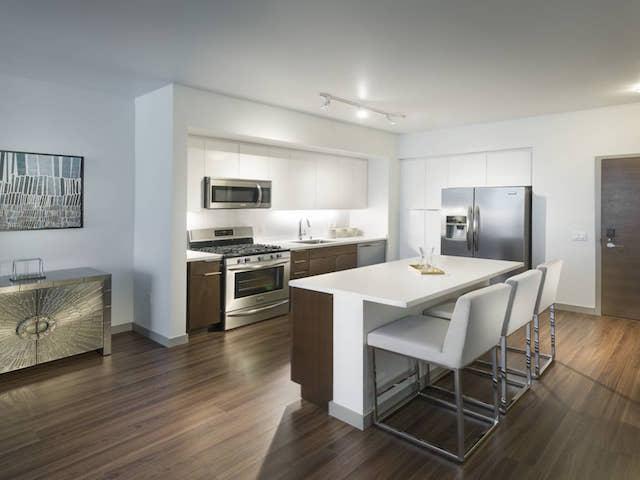 Designed for the sophisticated urban dweller, 3033 Wilshire luxury apartment homes feature expansive floor-to-ceiling windows, hardwood flooring, and sleek modern materials and finishes. Chic apartment amenities include modern kitchens, spacious master suites, luxe baths, and in-home washers and dryers.