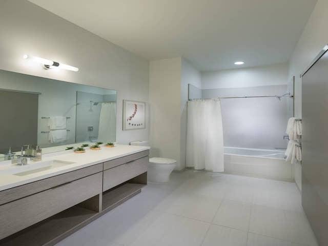 - Porcelain tile in the bathrooms