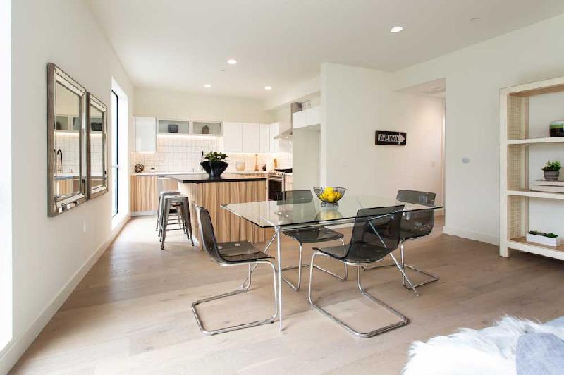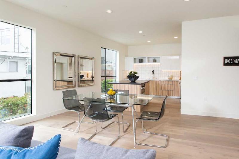 3981 Moore offers 7 units on 4 floors with two bedroom layouts ranging from 1,000 square feet up to 1,200 square feet. The units feature hardwood floors throughout, open living rooms with sliding glass doors that open to a private balcony, gourmet kitchens with granite and quartz countertops, Samsung stainless steel appliances, custom cabinetry, breakfast bar and adjacent dining area. The master bedrooms boast a luxurious en-suite bathroom and walk-in closet. They also feature smart fixtures, video security, wifi enabled thermostat, double pane windows, in-unit laundry, HVAC, tankless water heater and 2 car parking.