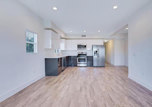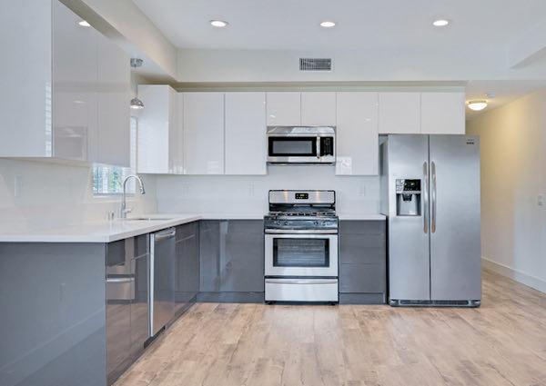 The units were completely remodeled from top to bottom, with brand new floors, large windows with lots of light, central A/C and heating, in-unit washer/dryer, and new appliances including dishwasher, microwave, oven/stove range. All units come with 2 or 3 car parking and bottom units come with their own private yard.