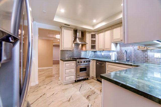 440 North Oakhurst offers 8 units on 3 floors with two and three bedroom layouts ranging from 1,800 square feet up to almost 2,800 square feet. They feature grand double door entry, expansive formal living rooms with fireplace, high ceilings throughout, floor to ceiling windows, private balconies and huge gourmet kitchens with an abundance of cabinet space. The master suites offer walk-in closets and large master bath with dual vanities, soaking tub and separate shower. Many of the units have been upgraded with hardwood floors, granite countertops, stainless steel appliances and designer bathrooms.