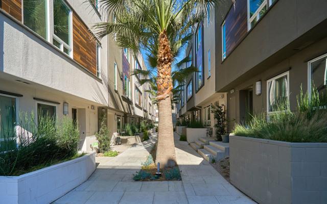 The project sits on the corner of Melrose Ave & Gramercy Place. There are 2 different floor plans available, and homes offer 2 bedrooms + 2.5 baths and a den, or 3 bedrooms + 3.5 baths. Each home boasts sleek, designer-style kitchens with modern fixtures, gourmet stainless steel appliances, interior laundry, 2 car garages, home automation systems and more. The rooftop decks enjoy views of Hollywood and the hillside and some homes have views of Downtown and the Hollywood sign.
