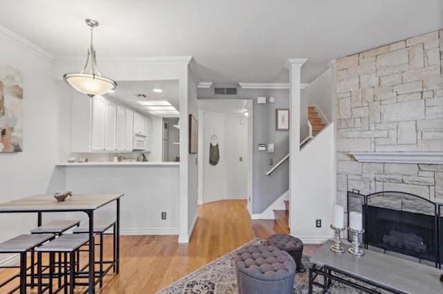 5401 Simpson offers 10 units on 2 floors with two bedroom layouts ranging around 1,200 square feet. They feature a fireplace in the living room, kitchen with breakfast bar, in-unit laundry and master suites with vaulted ceilings and en-suite bath. Many of the units have been upgraded with hardwood floors, granite countertops and stainless steel appliances.