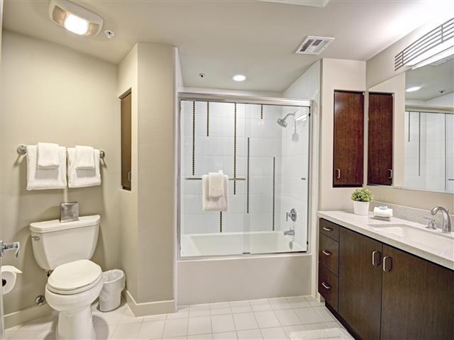The spacious one, two and three-bedroom apartment homes showcase dramatic living spaces with high ceilings, expansive windows overlooking the city and Hollywood Hills, and energy-efficient interiors. These luxury LA apartments are condo quality and feature only the best including gourmet kitchens with Caesarstone countertops, hardwood floors, walk-in closets, full size washer and dryers, designer track lighting and more.