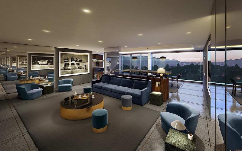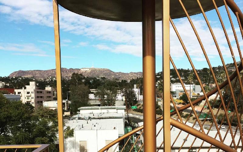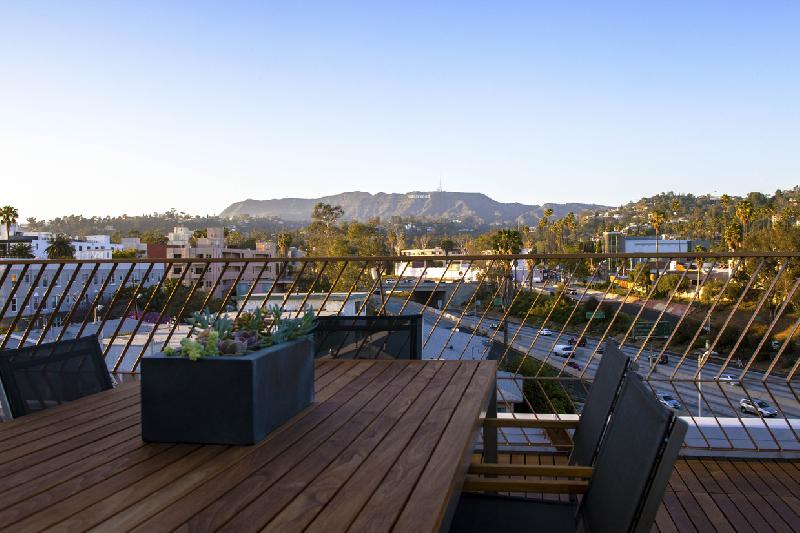 Designed by KSA Design Studio, the rooftop offers panoramic views of the urban core, the Hollywood Hills, Hollywood Sign, the Griffith Observatory, and DTLA.