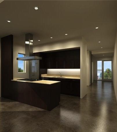 611 North Bronson lofts offers 10 units on 4 floors creating the sense of dramatic style and classic Hollywood all rolled into one. Wall to wall and floor to ceiling windows with geometrical lines provide the perfect escape to your Los Angeles lifestyle. The project is a series of stacked and shifted volumes that blur the distinction of regulated interior units - essentially double-stacked 2-story units with double height spaces. This stacking is emphasized by alternating materials of polygal and cement board panels, while the projecting volumes extending from the east and west faces are clad in metal or wood, creating much needed exterior patios and sun overhangs. These dramatic homes boast up to 19 foot ceilings, custom kitchens, polished concrete and wood floors, high end tile and fixtures & multiple outdoor spaces.