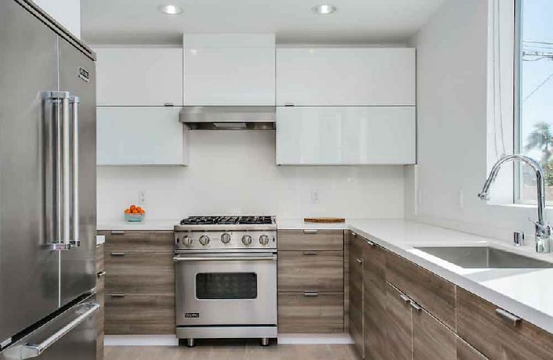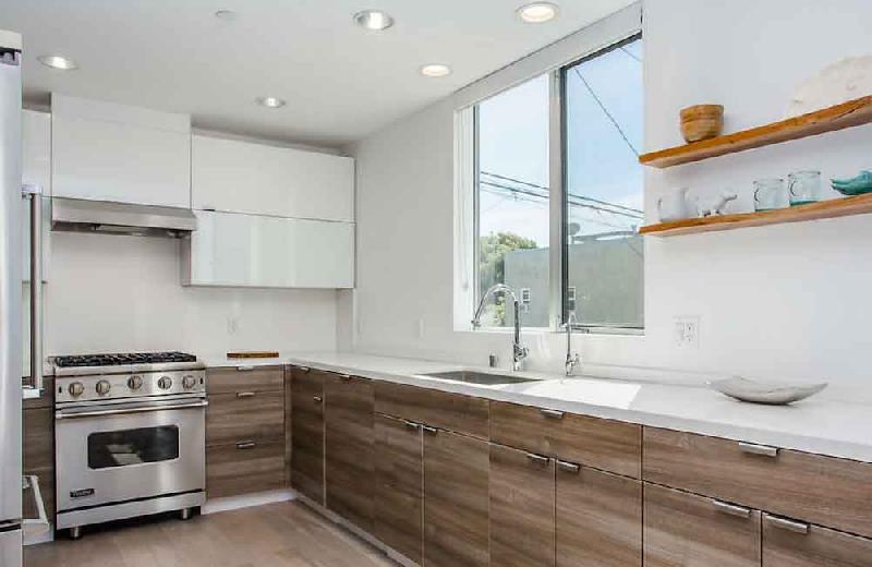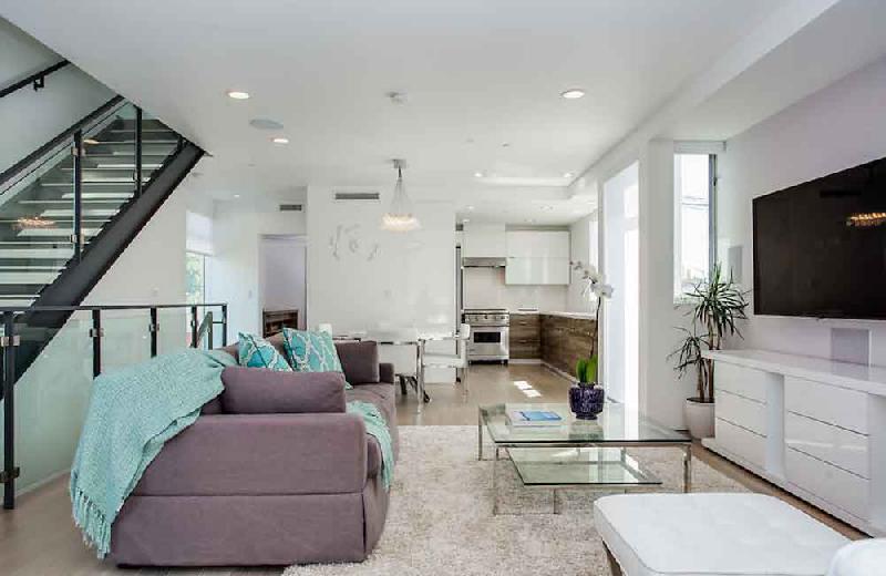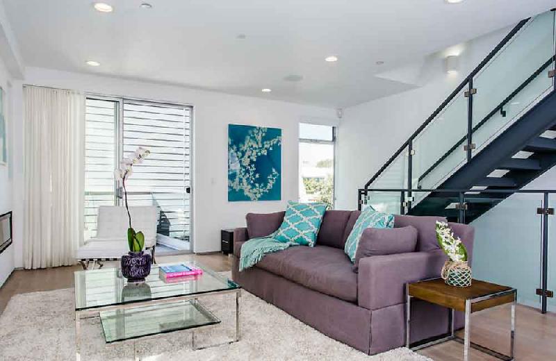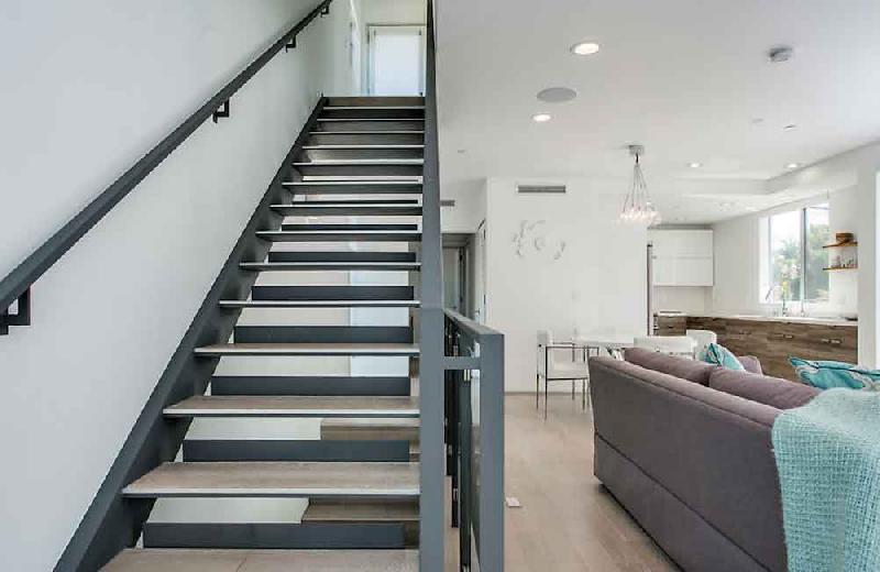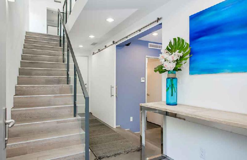 Due to the dense nature of this Venice neighborhood, privacy was a high priority. Additional outdoor space is created on third-level private decks that are surrounded by clerestory windows bringing natural light into the triple height entry without sacrificing privacy. The clerestory windows are also operable to allow for natural ventilation in this coastal climate. To further increase privacy, windows that face the side yard are inset from the façade.