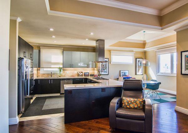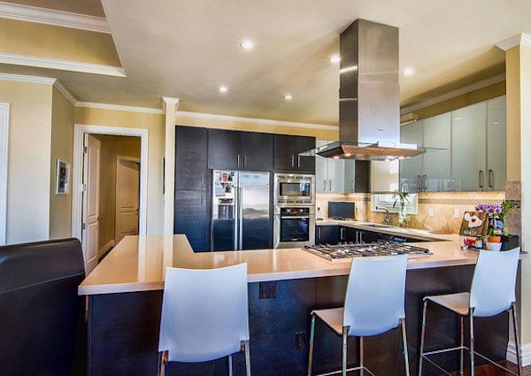 8612 Burton Way offers 11 units on 4 floors with two bedroom layouts ranging from 1,100 square feet up to almost 2,000 square feet. They feature open layouts, high ceilings throughout, recessed lighting, hardwood flooring, fireplace in the living room and large kitchens with stainless steel appliances. The master suites include walk-in closets and luxurious master bath with dual sinks.