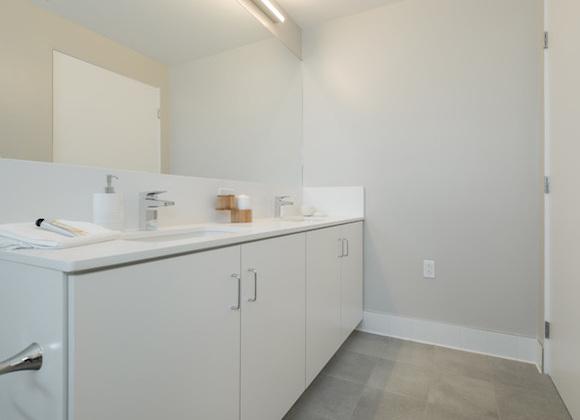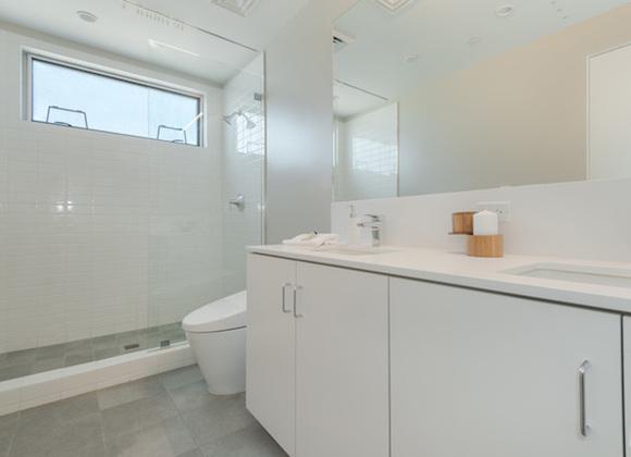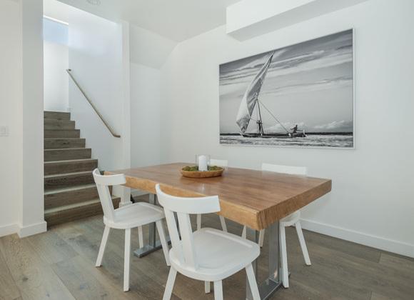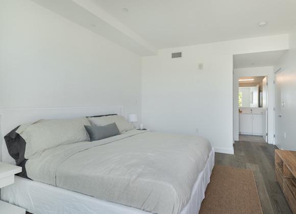 Ten multi-level, 3-bedroom, 3-bath townhomes are situated on the upper floors of AIRE, featuring bright, breezy interiors, double-height ceilings and two-level rooftop decks with views that extend to the Pacific Ocean. The open-flowing great room, the heart of the home, is designed as a gathering place to cook, dine, entertain and unwind while floor-to-ceiling glass doors open to multiple outdoor terraces meant for enjoying Santa Monica’s renowned climate and fresh, coastal air.