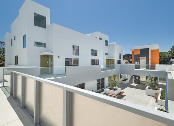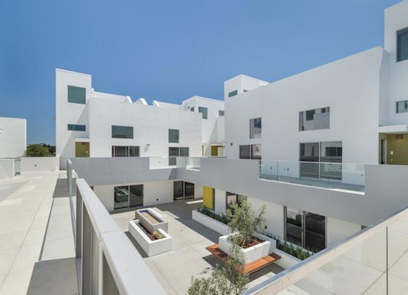 What started as a concept evolved into a central theme to create a seamless relationship between indoor and outdoor living. Three residential buildings frame an open-air courtyard meant for gathering, lounging, entertaining or simply enjoying Santa Monica’s temperate climate. The buildings collectively provide the foundation for a sculpturally articulated and materially rich exterior design that blends flawlessly with the surroundings. The buildings feature a geometric exterior enhanced by warm, natural materials, including recycled wood composite and cement panels and plaster. Stainless steel, aluminum and glass guardrails add a contemporary style to create a dynamic presence along 14th Street.