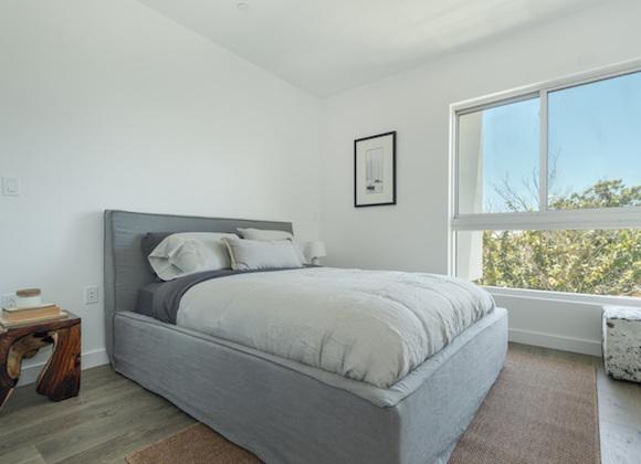 Nine single-story flats comprise AIRE’s first level featuring 2-bedrooms, 2-baths and expanded outdoor living areas that coordinate fluently with the central communal courtyard. Impeccably designed, light-filled interiors feature rich, subtle details that elevate the living experience, from the thoughtful placement of clerestory windows to the intuitive functionality of the open, chef-caliber kitchen. Each residence is purposefully designed to form a natural extension to the spacious terraces, creating a seamless indoor/outdoor lifestyle.