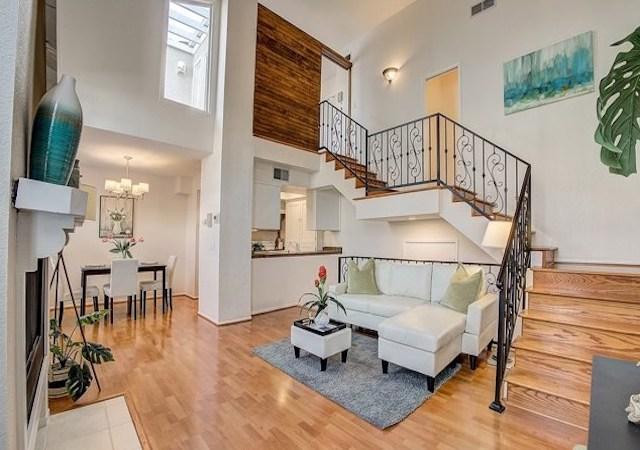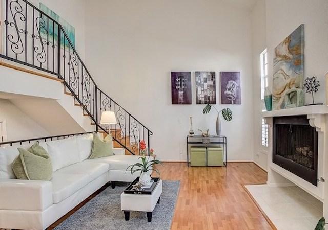 Almayo Townhomes offers 7 units on 3 floors with one and two bedroom layouts ranging from 800 square feet up to 1,400 square feet. They feature 2 story living rooms with a fireplace, double height windows, loft area and private balconies. The master suites include a fireplace, walk-in closet and en-suite bath with a separate tub and shower.