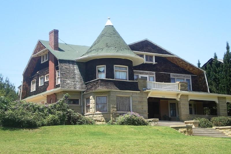 Built in 1902, the Kinney-Everhardy House at 1401 Alvarado Terrace (HCM #88) was built by the same architects (Hunt & Eager) who designed the Raphael House next door. The house has been described as "an eclectic combination of elements from both the Queen Anne and Shingle styles."