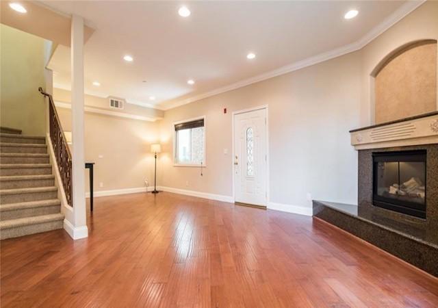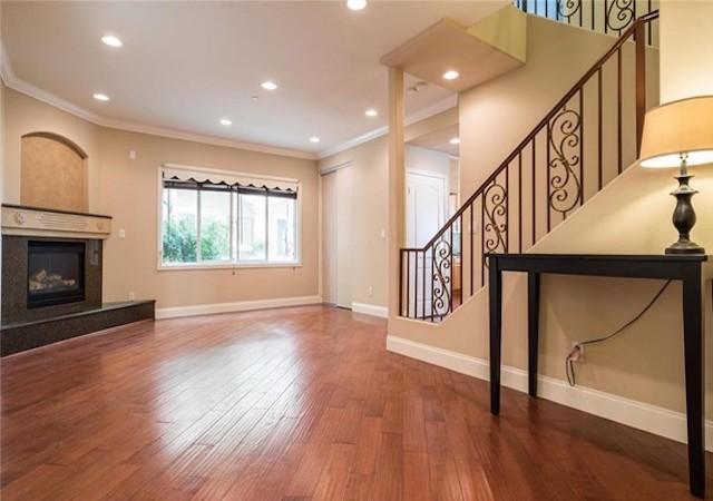 Angeleno Regency offers 14 units, (9) 3 Beds / 2.5 Baths Townhouses and (5) 3 Beds / 2.5 Baths Single Level Condos with private patios & balconies, Maple wood cabinets, granite countertops, recessed lighting, stainless steel appliances, crown molding, marble fireplaces in the living rooms, hardwood, tile & carpet flooring, washer & dryer hookups, central air & heat.