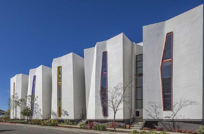 Apex 5, built in 2017, is a bold small lot division of single family homes in the in Del Rey and Culver City area adjacent to Marina Del Rey and Playa Vista. Each boasting long vertical ribbons of windows and floating staircases. Apex 5 offers five contemporary homes designed by architect Jeffrey Eyster.
