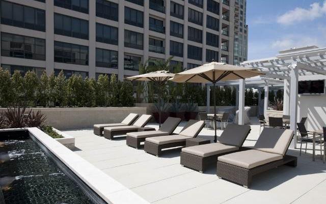 There is dedicated concierge & valet service. Terraced rooftop sky lounge with multiple intimate seating areas, gas fireplace, outdoor grilling and dining area, and premiere outdoor fitness terrace with two outdoor flat screen HDTV’s. Wine cellar with climate controlled bottle storage. Executive conference and private dining room for resident meetings and events.