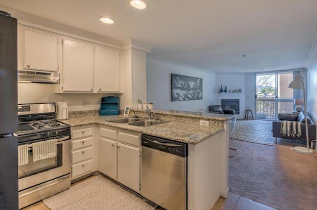 Bakman Towers offers 68 units on 4 floors with one and two bedroom layouts ranging from 600 square feet up to almost 1,000 square feet. They feature open floor plans, fireplace and wet bar in the living room, in-unit laundry, private patios and open kitchens with breakfast bar. Many of the units have been upgraded with hardwood floors, custom cabinetry, granite counters and designer tile backsplashes.