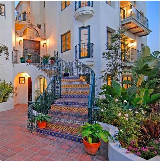 Inside the custom-crafted Art de Mexico door, the spacious layouts are bright and airy. Natural light streams through the many windows, highlighting the soaring ceilings and sloping archways inside, while showcasing the expansive, sweeping views outside. The sunlight-filled rooms are perfectly balanced with hardwood floors, traditional ironwork balconies and, for some, stairs leading to a private roof deck with views of the Hollywood sign, Downtown Los Angeles and Century City.