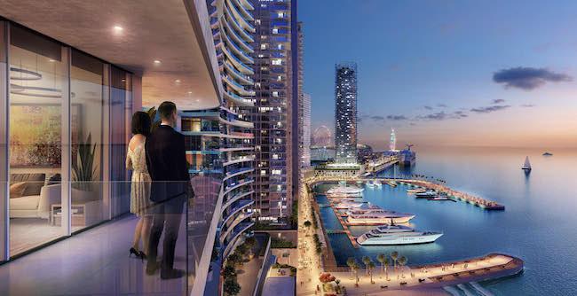 Nestled between Jumeirah Beach Residence (JBR) and Palm Jumeirah, Emaar Beachfront is an island destination with an accessible, perfectly connected address. Dubai Marina, the Palm and JBR will all be accessible within minutes, while the city's main hotspots such as Downtown Dubai are only a joyride away.