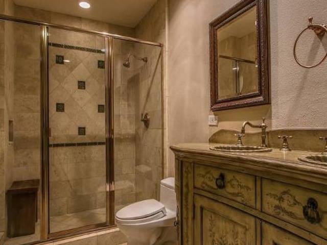 Bella Toluca offers 15 units on 3 floors with two and three bedroom single level and townhome layouts ranging from 1,300 square feet up to 2,700 square feet. They feature high ceilings, recessed lighting throughout, distressed hardwood floors, ornate fixtures and gas fireplace in the living room. The kitchens offer custom cabinets, granite counters, stainless steel Jenn-Air Professional appliances and a wine cooler. The spacious master suites include walk-in closets and the master baths feature dual sinks and spa bath tub.