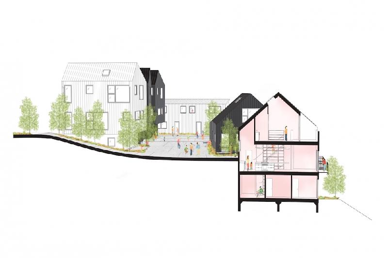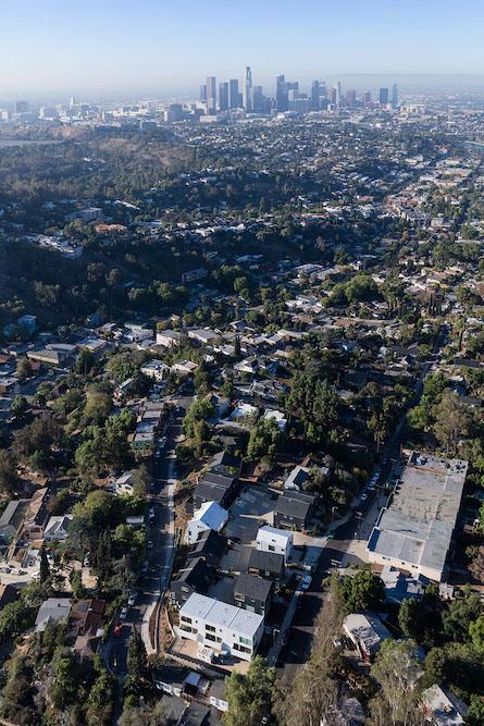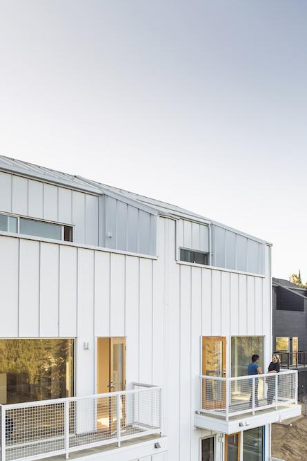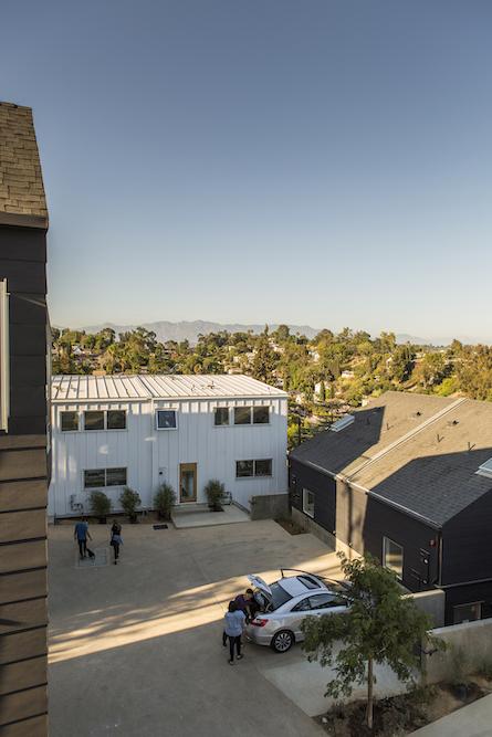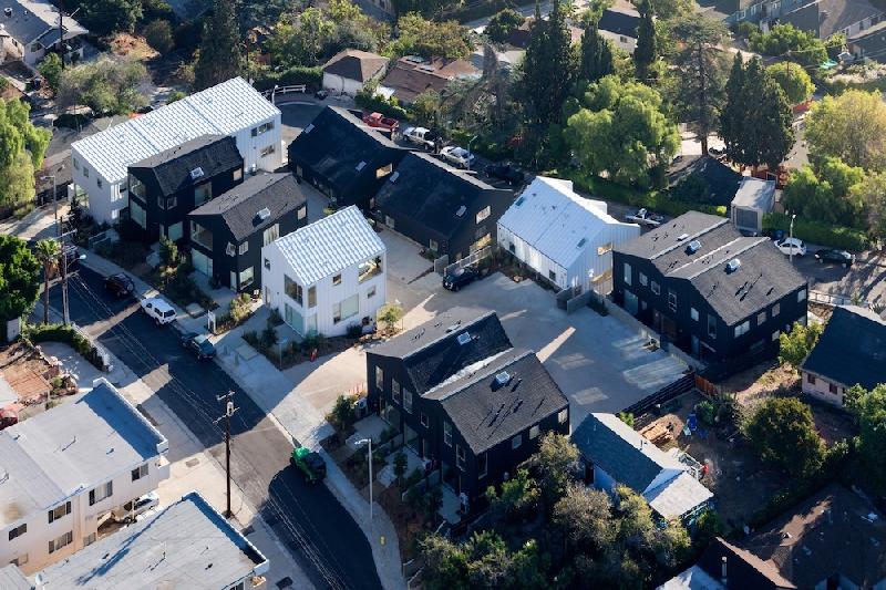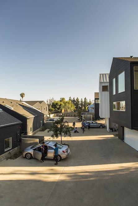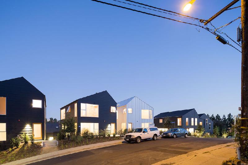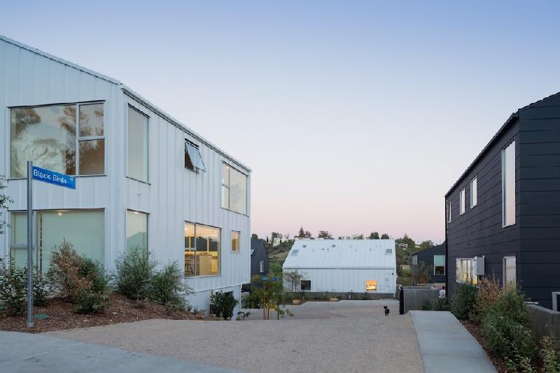 Blackbirds, built in 2015, is a cluster of 18 homes nestled in the bohemian hills of Los Angeles' Elysian Heights in Echo Park. Blackbirds is a progressive design solution for high quality dense housing in a city with little available land. The houses are under 1,920 square feet and are built around a living street: a central courtyard that comprises both landscape and parking areas, as well as serving as the stage for larger community functions and play. Blackbirds is an experimental contemporary urban living where community, nature, and design are in balance with each other.