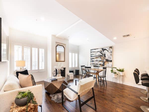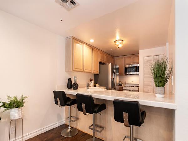 Brentwood Court offers 9 units on 4 floors with one, two and three bedroom layouts ranging from 640 square feet up to almost 1,800 square feet. They feature high ceilings throughout, a fireplace in the living room, private patios, in-unit laundry and kitchens with breakfast bar. The master suites include walk-in closets and some feature a fireplace.