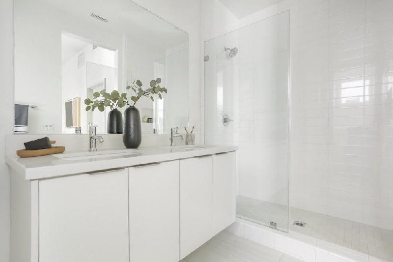 - 4x12 White subway tile in shower to the ceiling