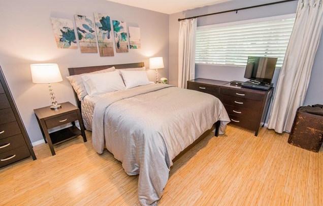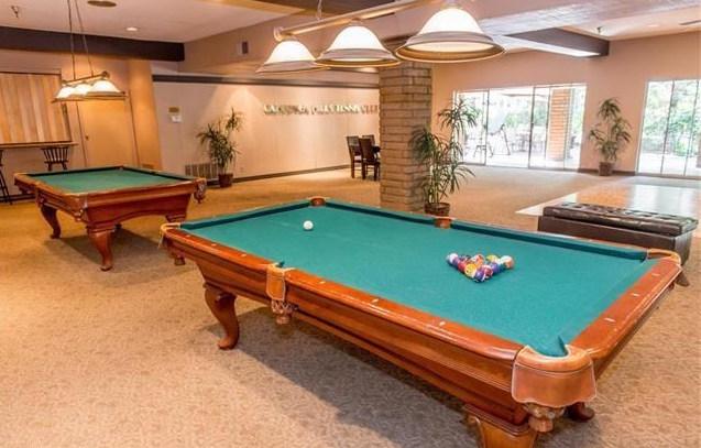 Amenities include gated entry, 2 pools, 2 saunas, 2 club house, 3 tennis courts, a spa, sun deck, dog run, hiking trails, bike storage and a gym.