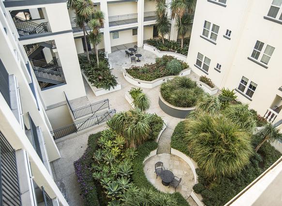 Catalina Playa Vista Condominiums offers 66 units on 4 floors ranging between 900 to 1,300 square feet. Catalina floors plans are similar to its sister building, Avalon, and are a combination of two-bedroom and two-bedroom plus den single and two level layouts oriented to look outward toward streets and walkways, maximizing privacy of residents. They feature open layouts, fireplace in the lving room and open kitchens with breakfast bar. The master suites feature walk in closets and en-suite bath with dual sinks and separate tub and shower. The fourth floor residences feature higher ceilings and arched windows.