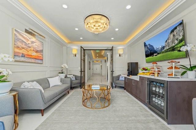 The tranquility lounge serves as a serene multipurpose space exclusively for residents to enjoy a collected atmosphere embellished with panoramic views of Century City, Beverly Hills, and DTLA. Enjoy a freshly brewed cappuccino, latte, or hot cocoa alongside an array of freshly-baked pastries.