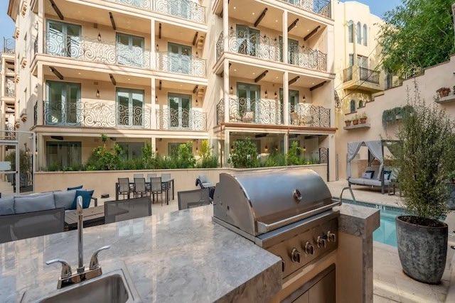 Entice your taste buds with a freshly prepared meal in the outdoor chef's kitchen. Gourmet Coyote barbecue and serving counter at your service to prepare your favorite dish for your family and friends.