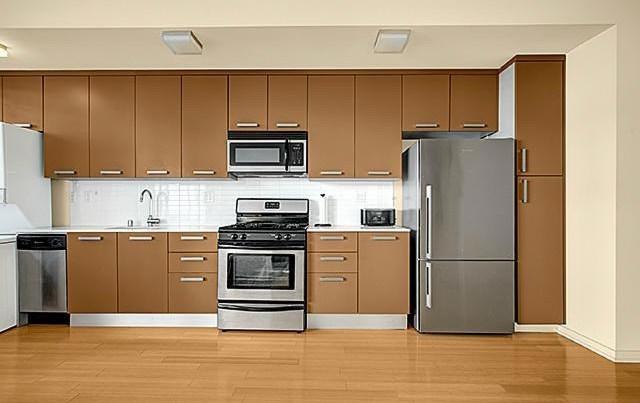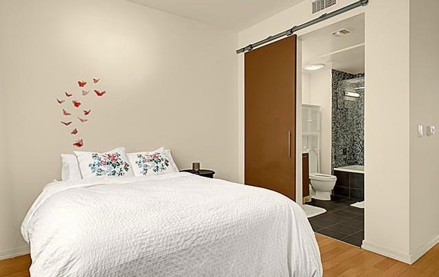 The true open loft floor plans feature 14 - 18 foot ceilings and large windows that keep this modern loft project light and bright. Interior features include open floors plans, vaulted ceilings and private patios or balconies with city or mountain views, epoxy concrete flooring, sleek European style kitchens with CaesarStone quartz countertops and stainless steel appliances, in-unit laundry and individual security systems as well as building security.