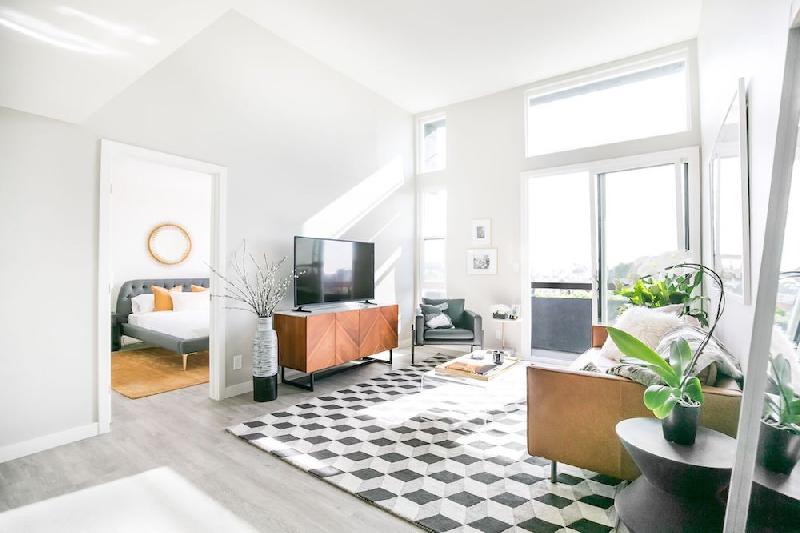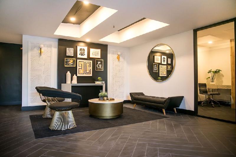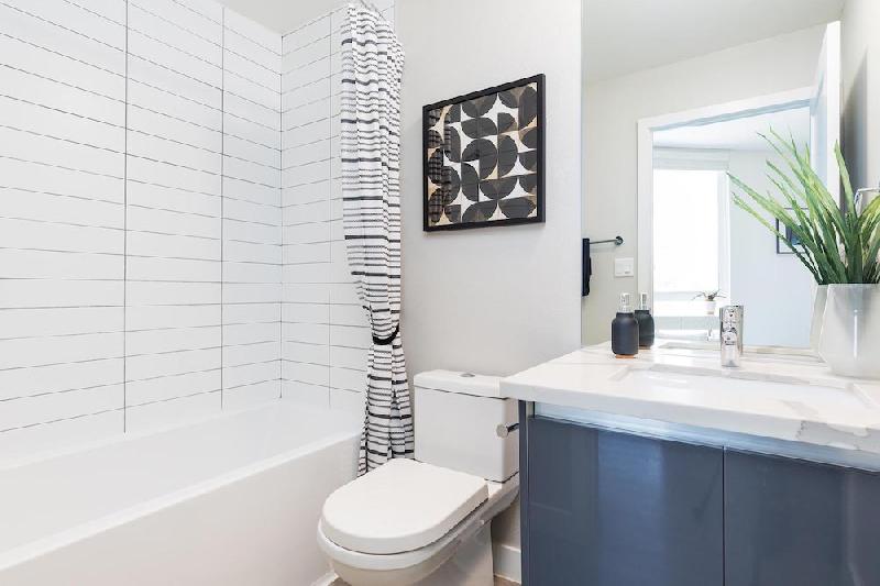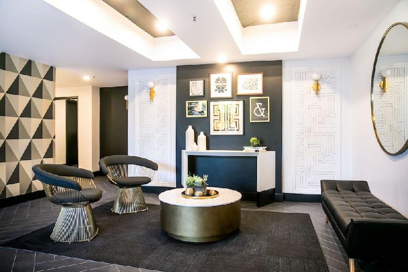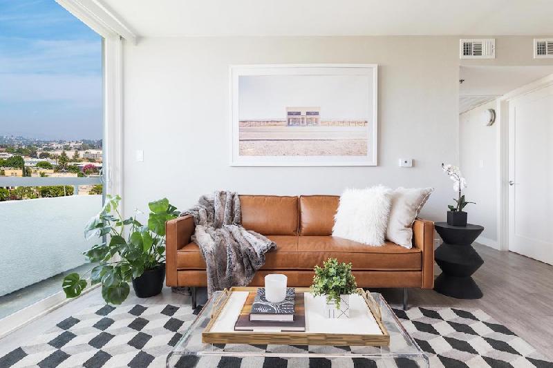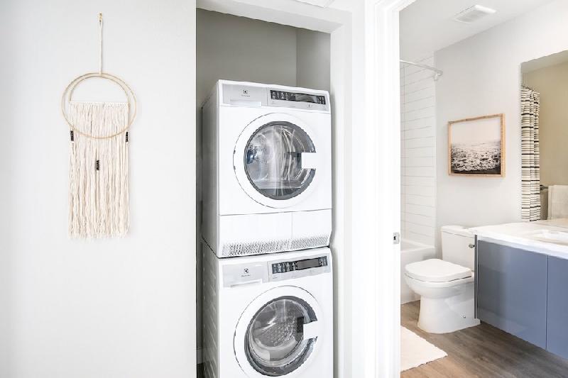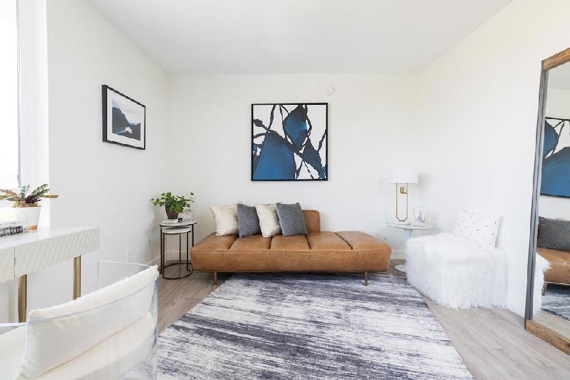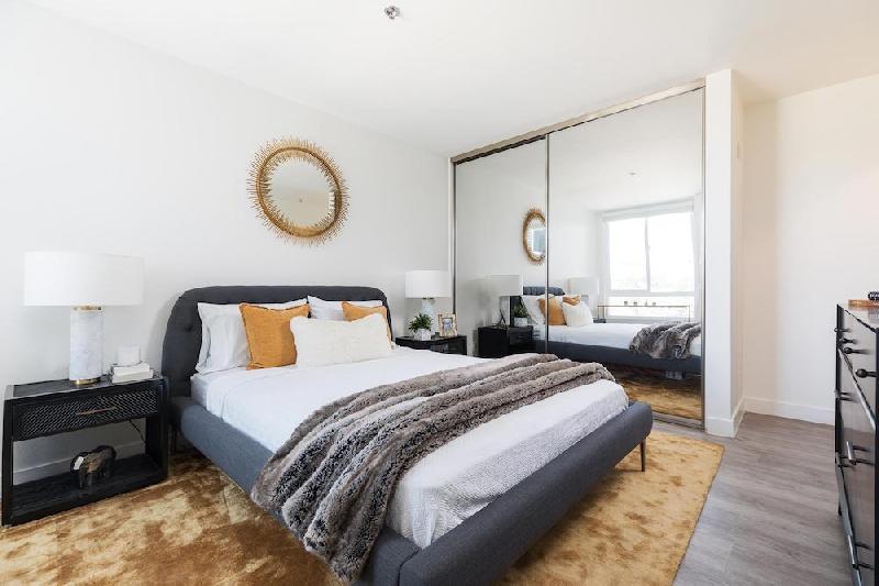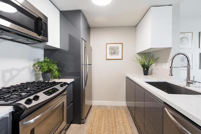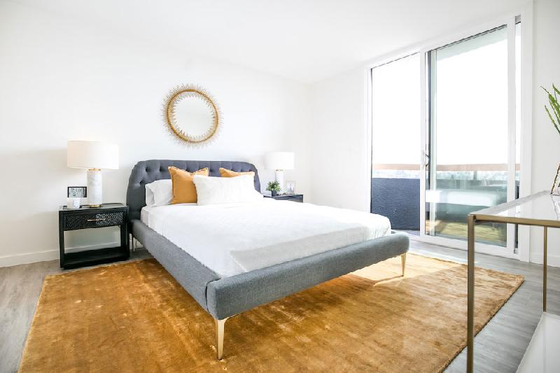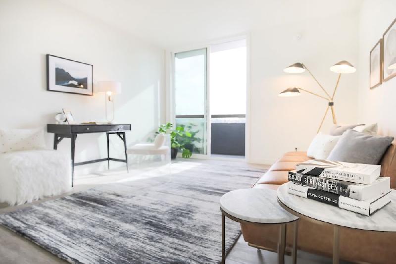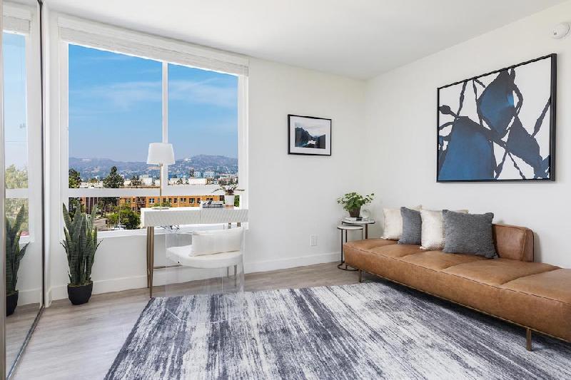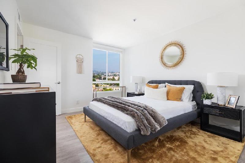 Each impeccably designed, light-filled two-bedroom apartment home features a private balcony, an in-unit washer and dryer, Central HVAC, and a host of designer finishes including quartz countertops and vanities, custom-tiled baths, wood-style flooring, and stainless steel kitchen appliances. Here, tastemakers, pet parents and active Angelenos enjoy stylish finishes, private balconies and well-appointed social spaces.