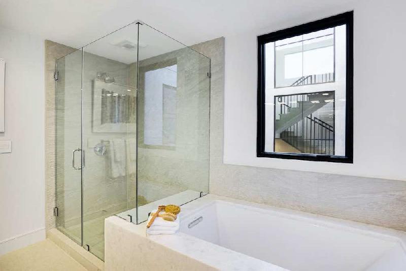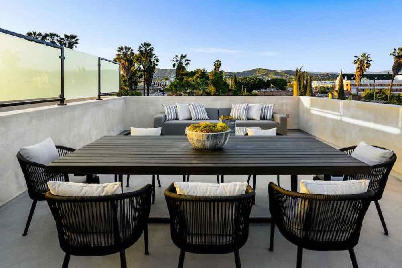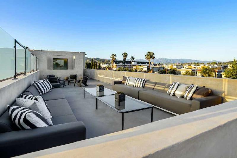 Each townhome offers 4 bedrooms and 4.5 bathrooms with a low maintenance yard, light-filled grand central atrium open to the sky that is perfect for lounging with your morning coffee or dining al fresco. Expansive 1,100 SF private rooftop terraces with views of the Hollywood Sign, Griffith Observatory, Downtown LA and Century City. Each floor enjoys outdoor space.