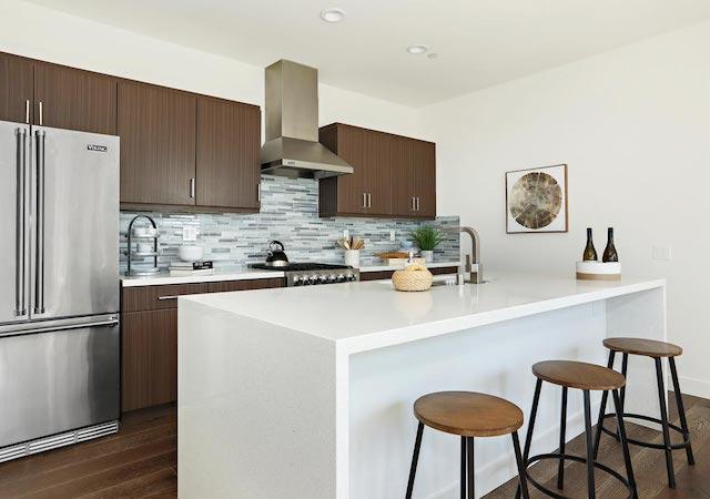 - Center island with waterfall edge