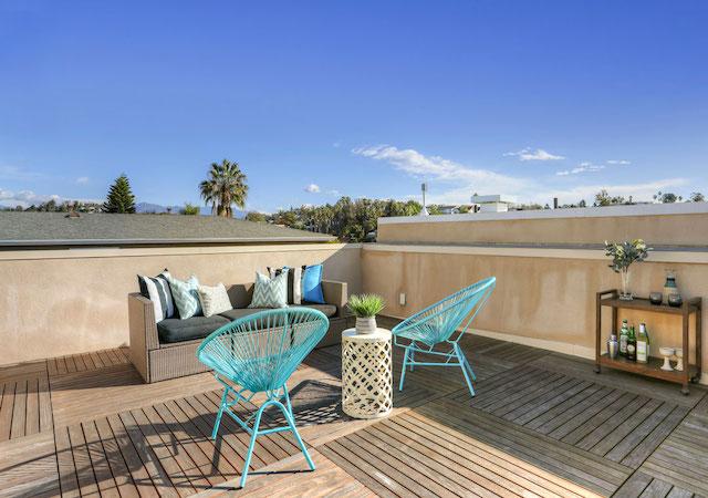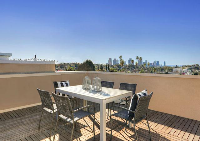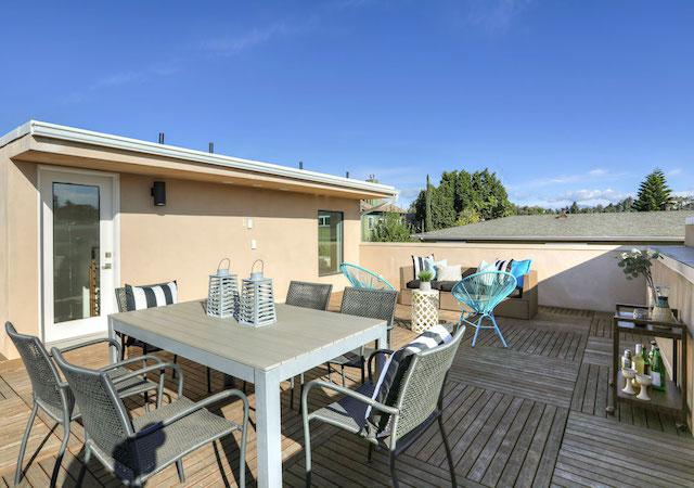 Private rooftop deck with Mangaris wood raised panels